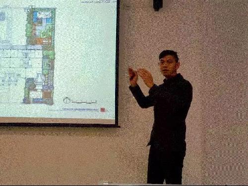 讲堂上,陈博士介绍了景观设计至竣工的全过程,详细解读了各步骤及各步的注意事项。他认为设计师应当真正希望设计出一些新颖独特之物,并勇于接受新鲜事物;设计师应对艺术、哲学、历史有深刻的理解,必须具有敏锐的理解力。在最后他分析了一些景观案例,和同学们分享了自己景观设计的观念与经验。在讲解结束后的提问环节,陈博士详细耐心地回答了各学生的问题。