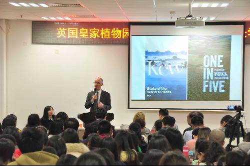 221日晚,英国皇家植物园Royal Botanical Garden, KEW园长兼执行主任Richard Deverell受邀到我院作了一场题为大数据能为植物学做什么的主题学术报告。报告由张启翔教授主持,全校相关专业师生、留学生以及来自北京植物园、北京市科学技术研究院、石家庄植物园、东方园林等相关单位200余人前来聆听讲座。报告会现场座无虚席,气氛热烈,交流频繁