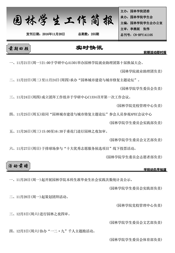 第255期园林学院学生工作简报