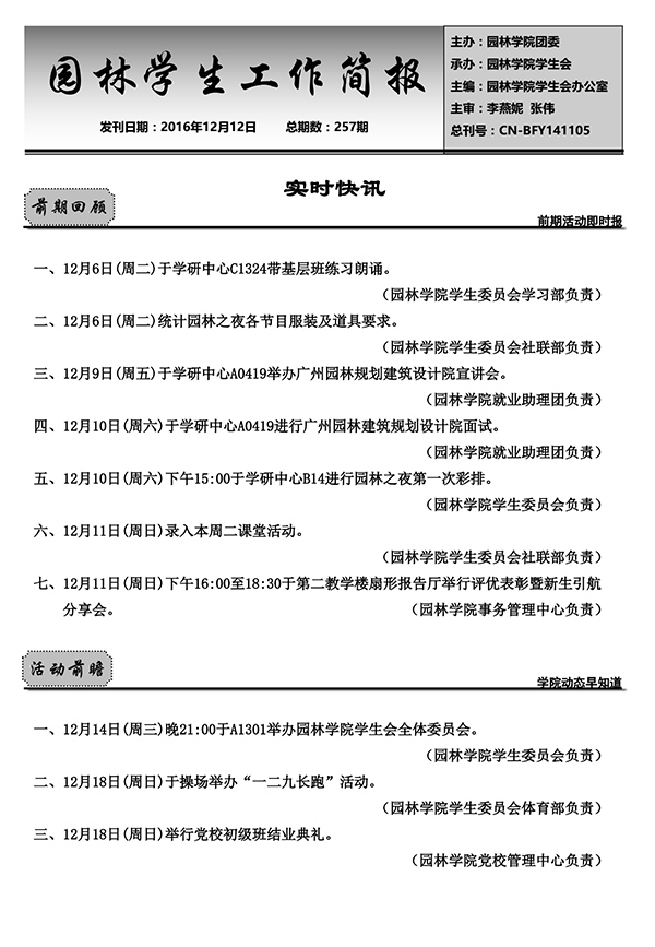 第257期园林学院学生工作简报