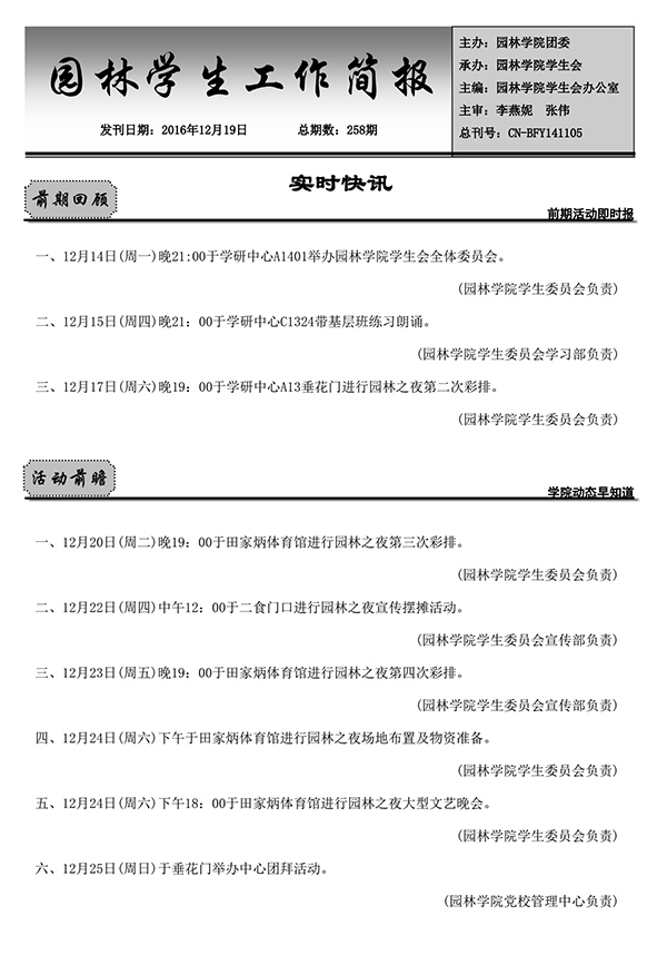 第258期园林学院学生工作简报