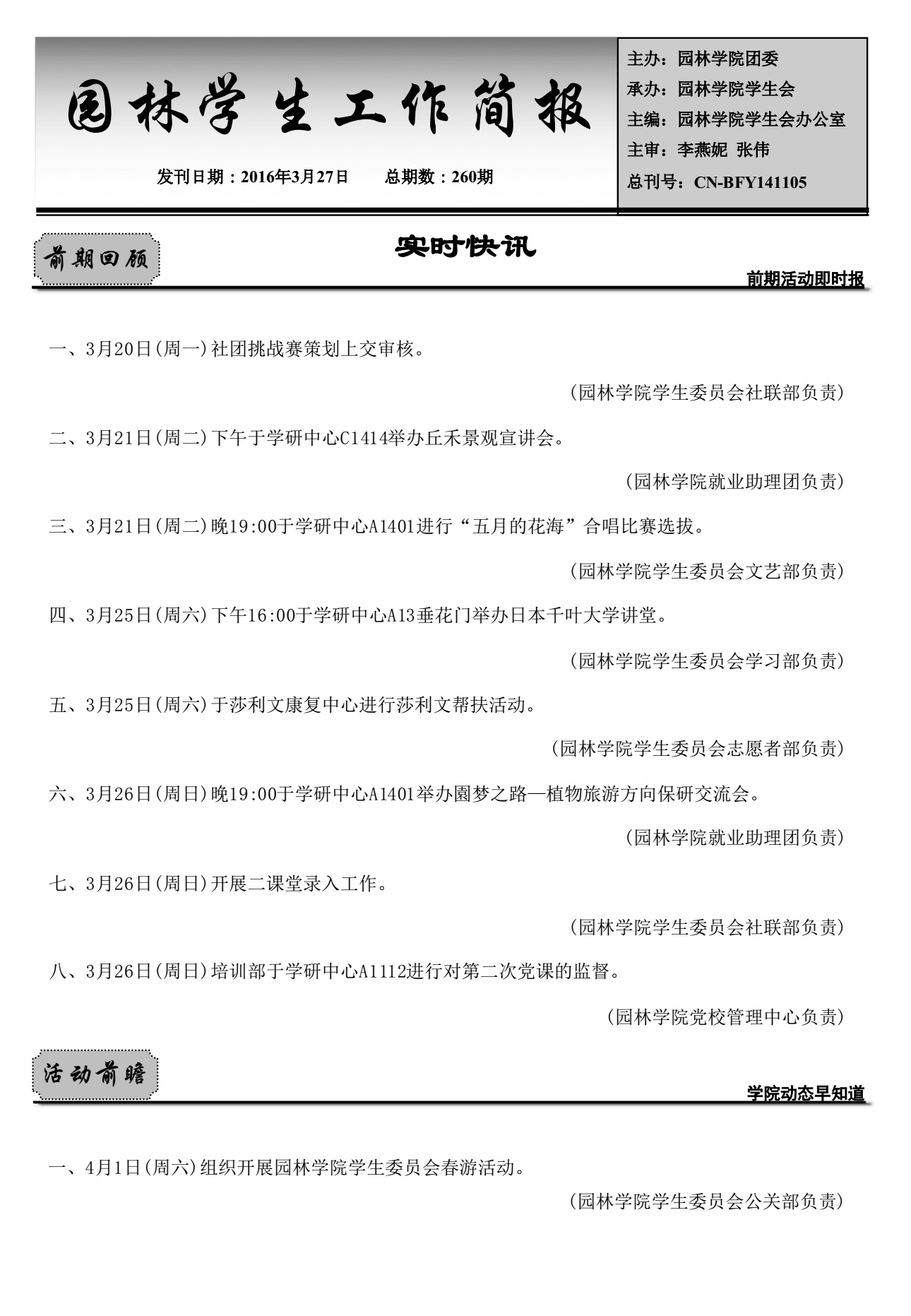 第260期园林学院学生工作简报