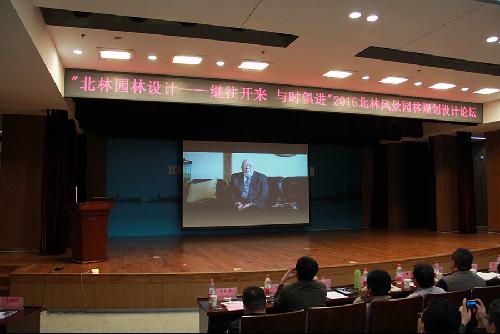 2016年4月16日,“北林园林设计——继往开来与时俱进” 2016北林风景园林规划设计论坛在北京林业大学学研中心报告厅召开。北京林业大学党委书记王洪元、园林学院党政领导班子及多位行业顶尖专家、一流学者、领军设计师及企业家出席论坛并参与点评交流。
