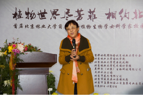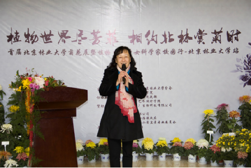 开幕仪式由首都女教授协会北京林业大学分会会长、园林学院戴思兰教授主持。北京林业大学副校长、园林学院院长李雄教授致辞,他对我校举办首届校园菊花展表示祝贺,并代表学校和园林学院向各位科学家们致敬。他说,菊花恬然自处、自强不息的高风亮节正与各位女科学家的高尚品质相得益彰。我们期待在分享菊花相关科研成果的同时,与各位科学家一道赏菊品菊,体会中国菊花文化的神奇魅力。