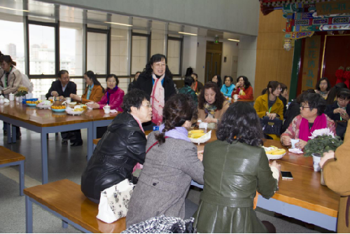 活动最后科学家们在学研中心垂花门大厅茶话交流,观看菊花科普视频并合影留念。