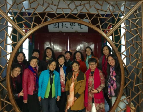 随后,嘉宾们参观了菊花展和园林学院展厅,杨晓东副院长为科学家们介绍了园林学院的基本情况,他用“六个之最”概括了园林学院在中国园林教育领域的地位:办学历史最早、学科地位最高、师资力量最强、学科设置最全、国际获奖最多、学生规模最大。